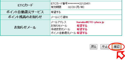 - C画面の内容を確認後、ページ下部の「確認」をクリック
